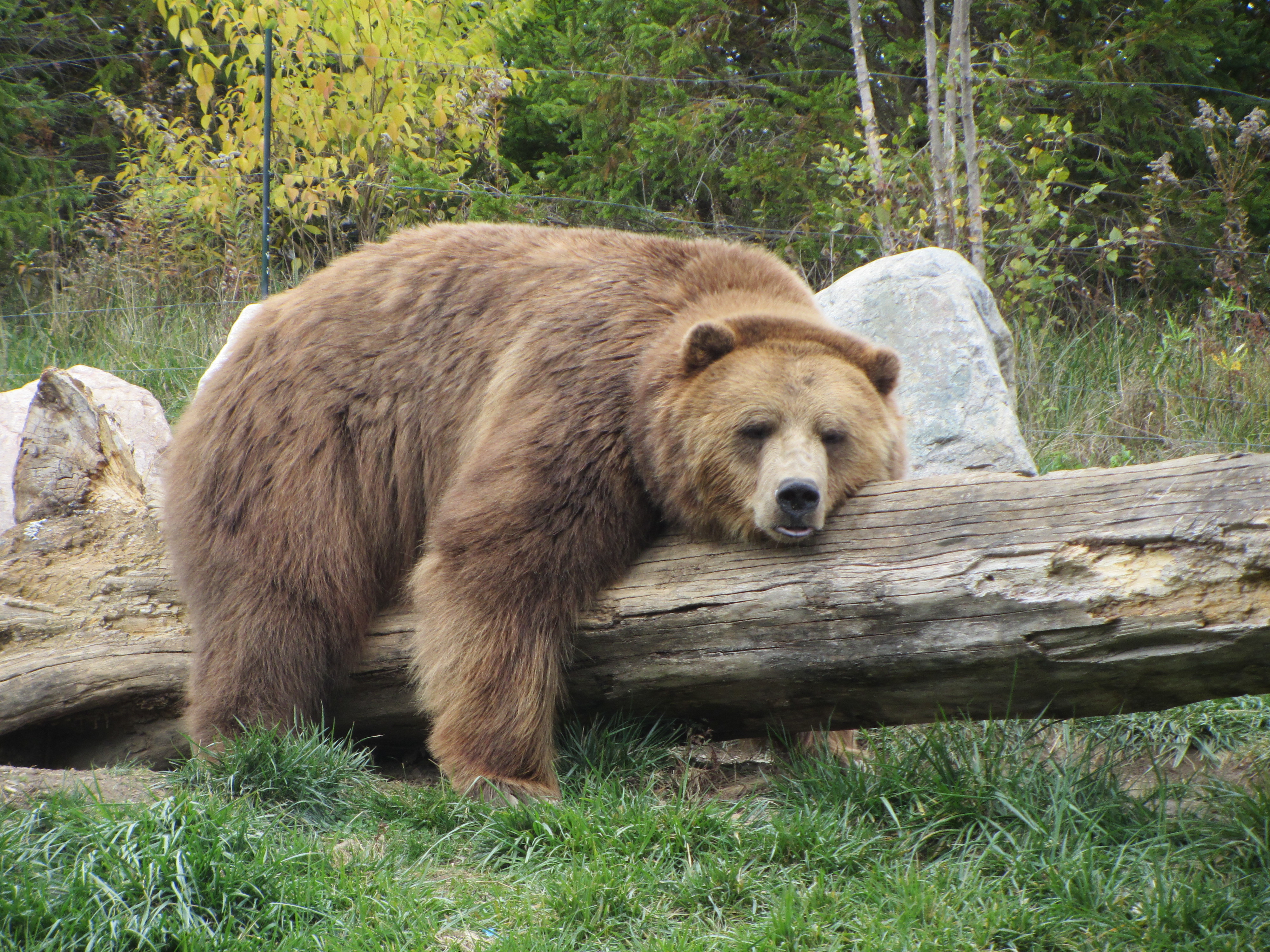 We did get to see two very happy looking brown bears. First in their little den chomping on bear kibble. Then once they were full it was time for a nap. This wouldn’t be my first choice as a napping spot but it seemed to suit the bear.