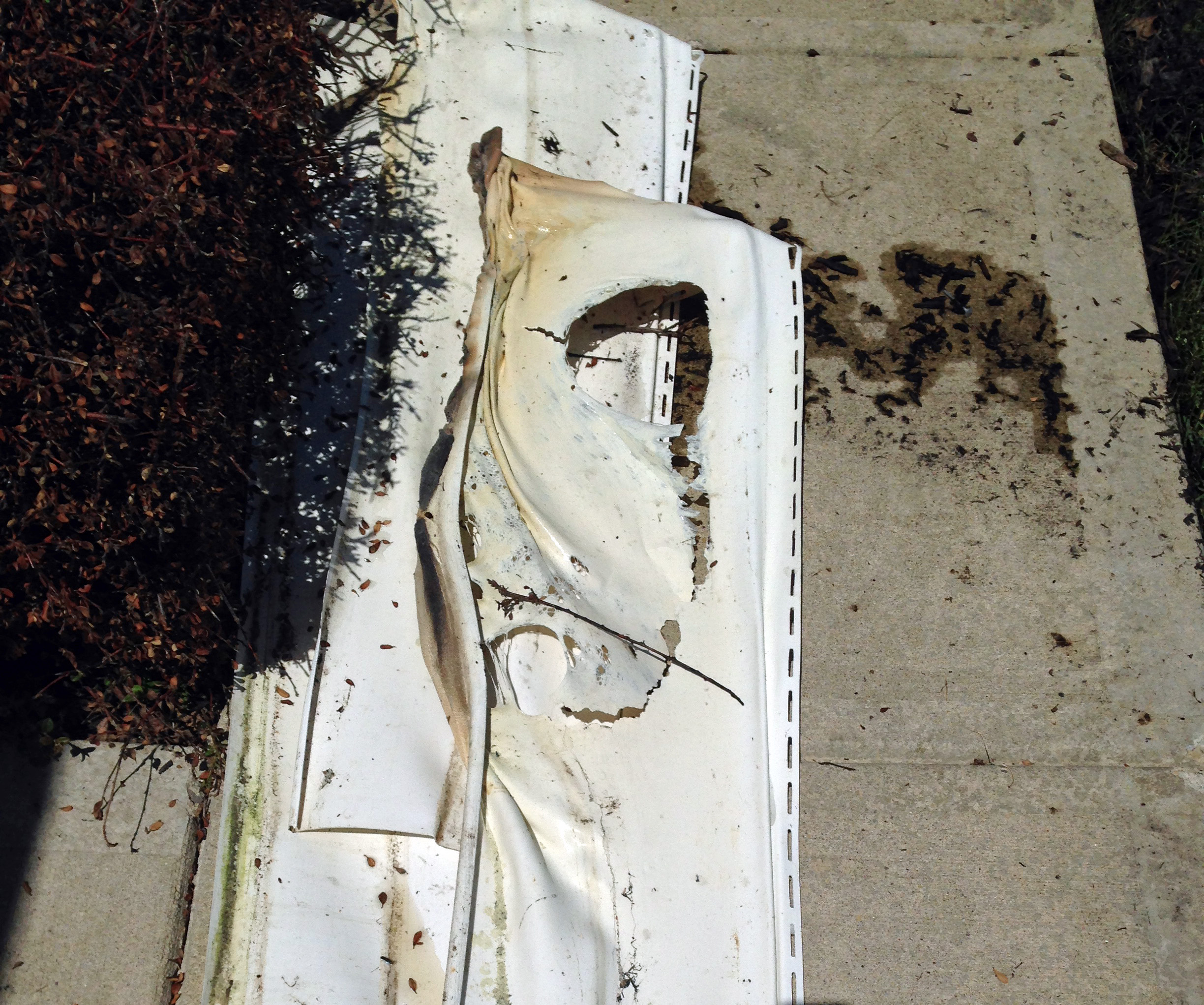 The shrub that used to sit there was nothing but branches and it was completely gone in some places. Everything looked like it was covered in grey ash. The siding had melted. The mulch was smoking. On a cool, Monday afternoon the mulch in front of our apartment had caught fire. Not only was it odd because it was such a cool day, but it was the second fire in the complex that day.