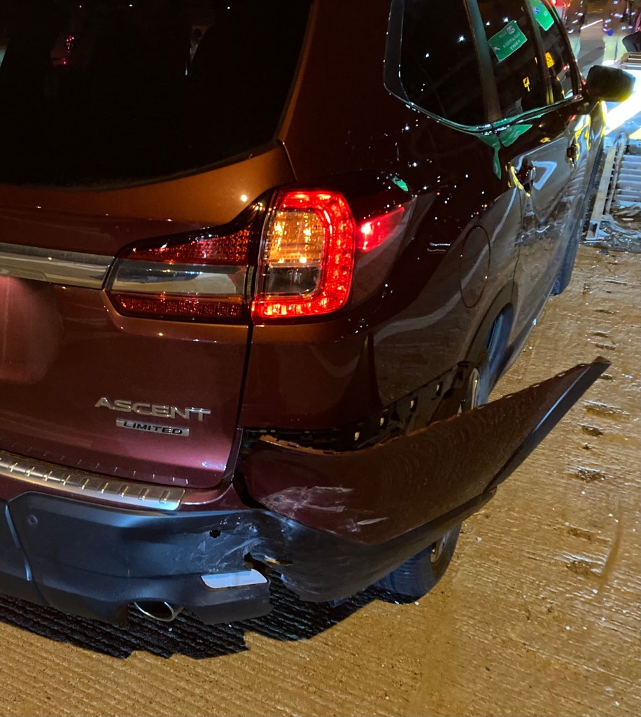 A fire truck, EMS and police arrived on scene shortly after. Each first responder stopped to make sure we were ok. I was so impressed by the care they showed. We saw the fire fighters check to make sure that the first car wasn’t leaking fuel. It must have been fine because they left first. I saw the EMS take away the driver of the Forester. She appeared to be an older woman who acted confused and hurt (for obvs reasons). My speculation is that she had some sort of medical emergency. Whether she got confused by the signs, lanes, or something more serious, I think that is the most likely scenario.