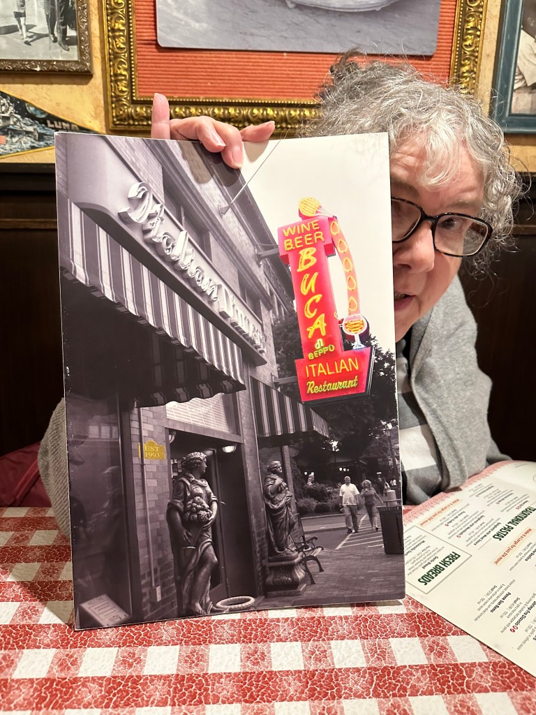 I had to rest a bit, but I started trying to find some place for dinner. Every place was way fancier than we wanted. I made reservations at a restaurant, but as we were walking there, we saw Buca di Beppo. We love that restaurant, and we knew that we would be properly dressed. We ordered way too much food, but it was a lot of fun.