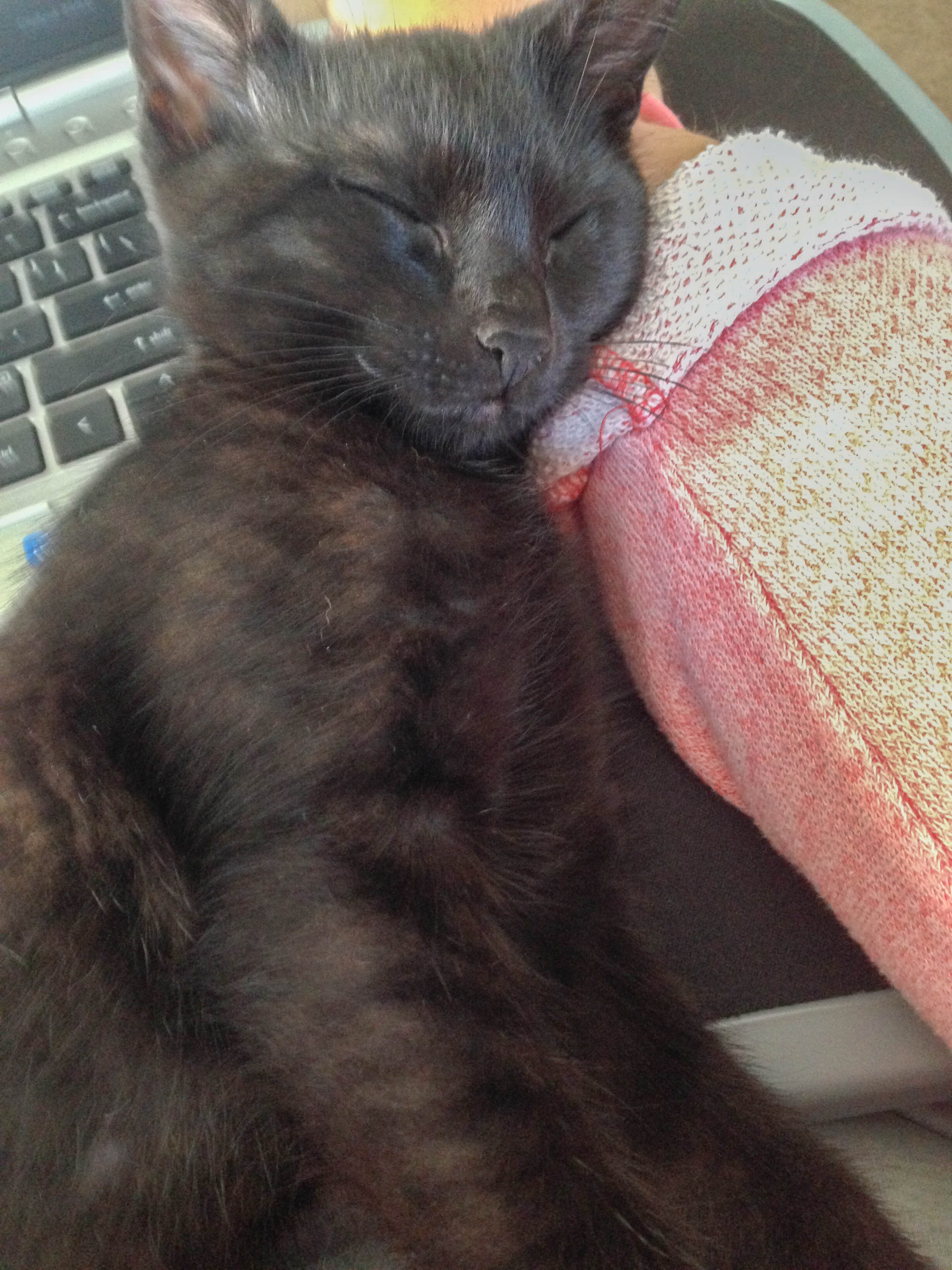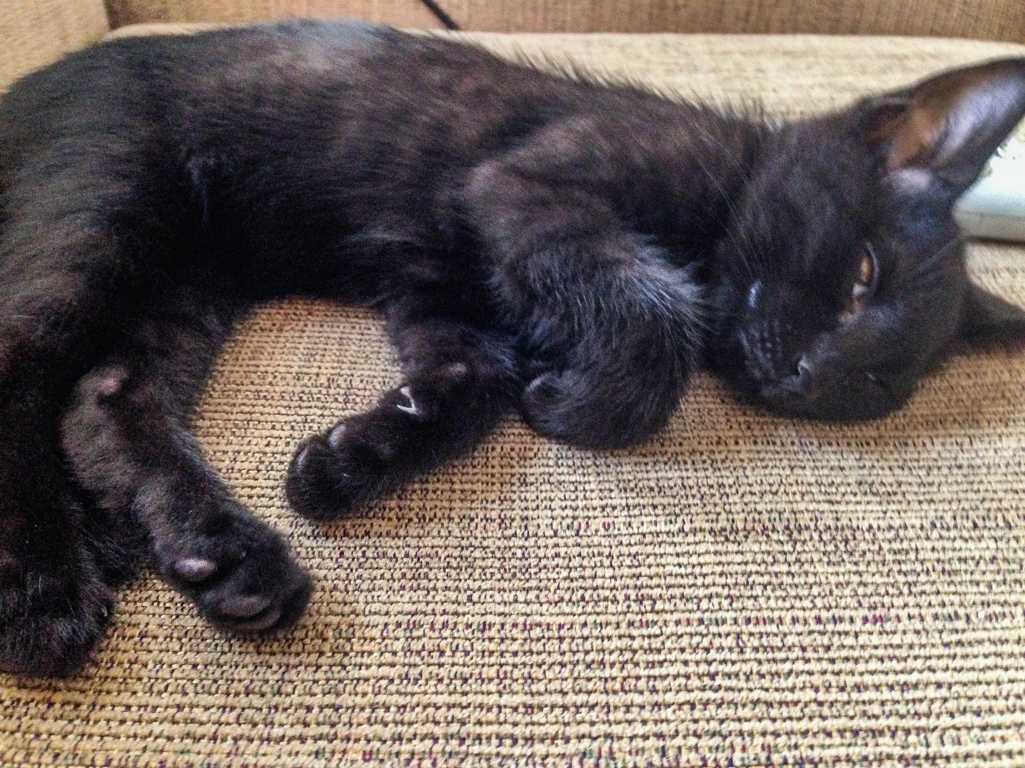 I have an OLD recliner in my office. I bought it ten years ago or so for $45 at Habitat for Humanity ReStore. I bought out from under and another couple. I had no guilt. This was the perfect chair for my office. Luckily, it is old and janky so I didn’t mind when the kitten started scratching at it. Only piece of used furniture we’d let her do that on. The material feels like corduroy so it’s held up very well. Anyway, while I think it’s perfect for crafting, playing video games, watching a show or just sleeping in when I don’t feel well, baby girl thinks it’s her chair for naps.