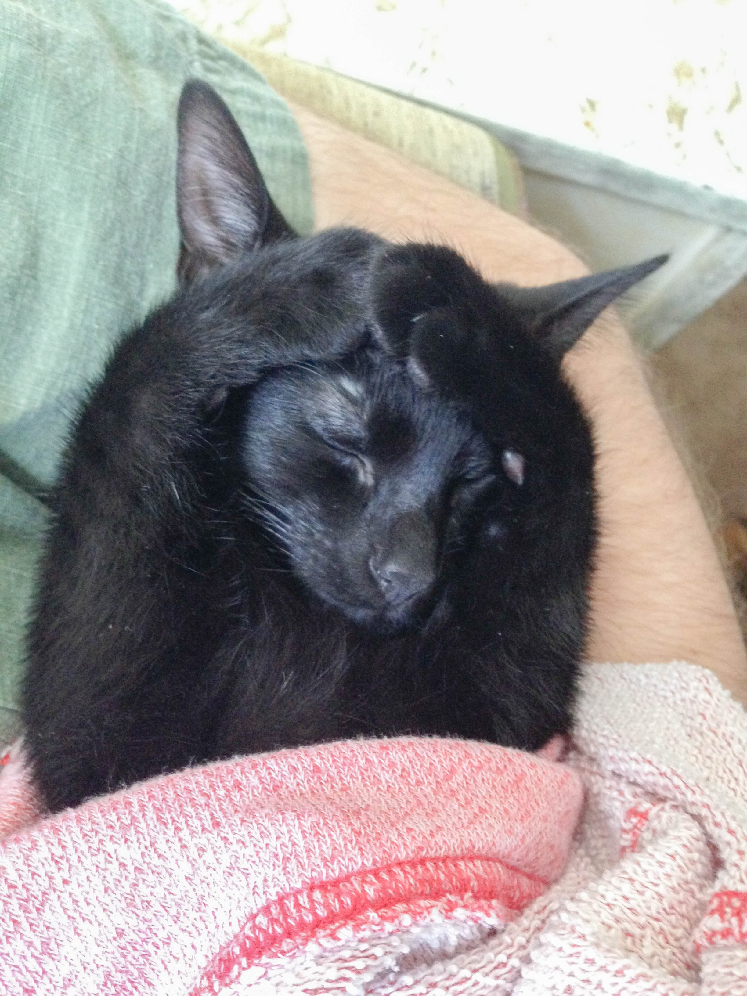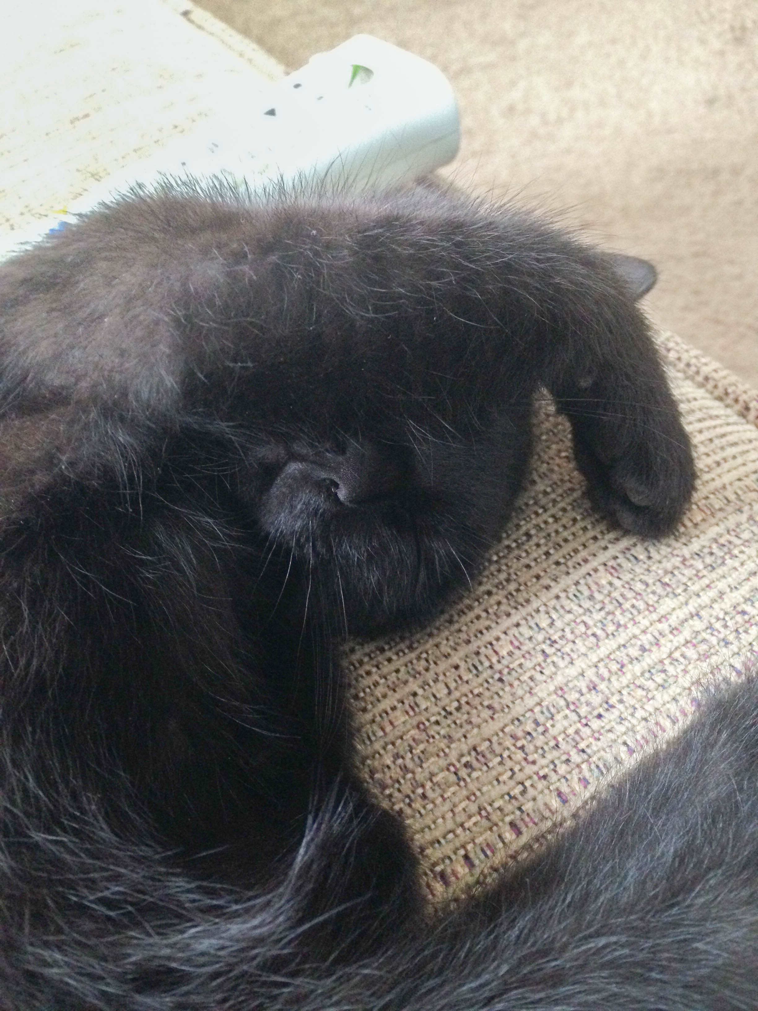 Last night I tried to sit down and get ready for a restless night since I haven’t been feeling well. I gently tried to coax her out of the chair for a minute, I started recording at about 30 seconds. Finally, I got tired of waiting and used a bit more of a forceful pat to finally get her out of the chair. She was for sure being a little shit about the whole thing.